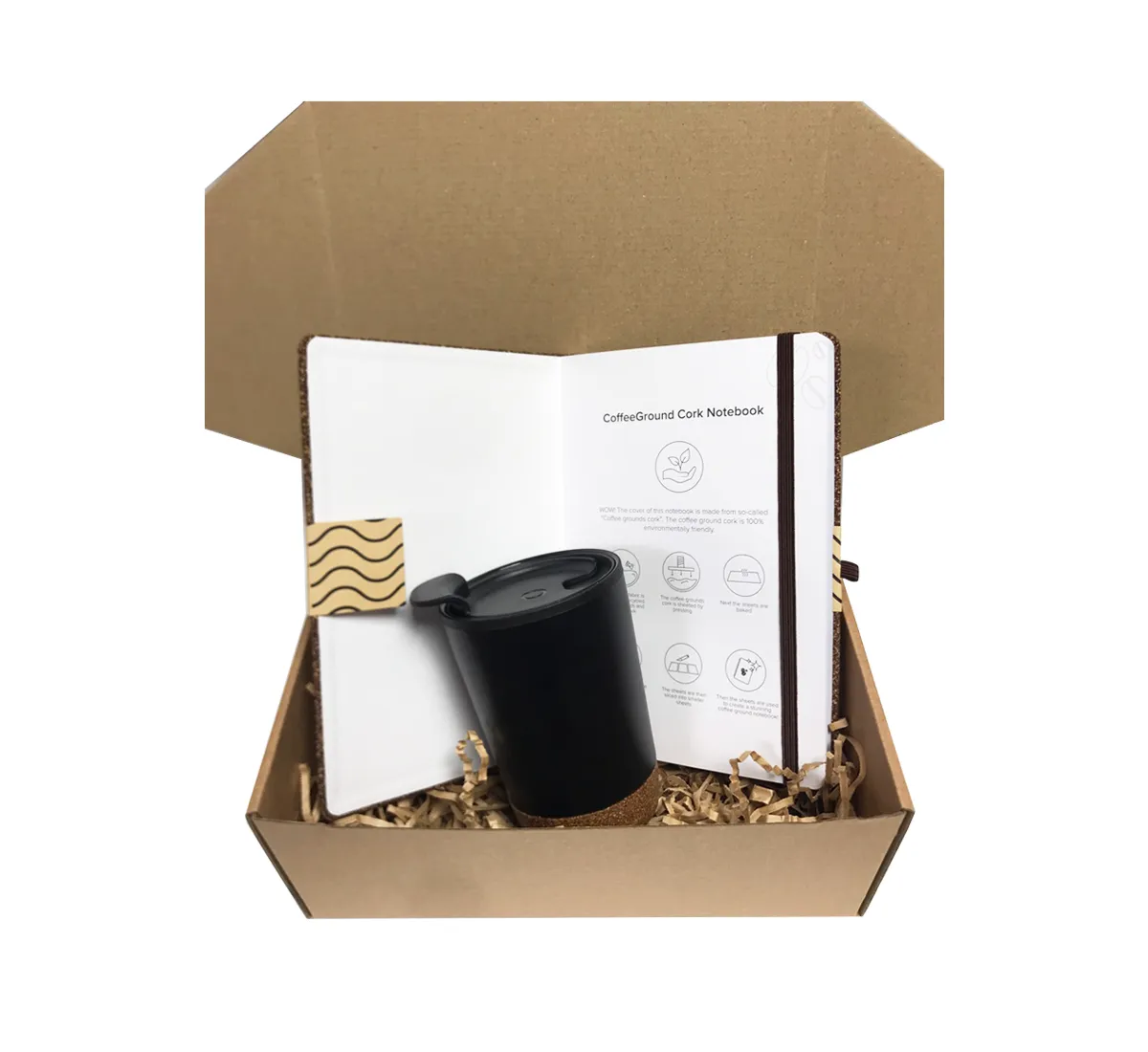 Еко комплект с тефтер от кафе WoW A5 и чаша GRS RPP 300 ml съчетаващ стил, функционалност и устойчиво производство. Двата продукта са поднесени в  крафт кутия в, готови да впечатлят с автентичния си вид и внимание към детайла. Това е комплект, създаден за хора, които ценят качеството, естетиката и грижата за природата.