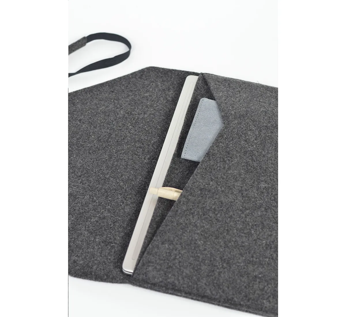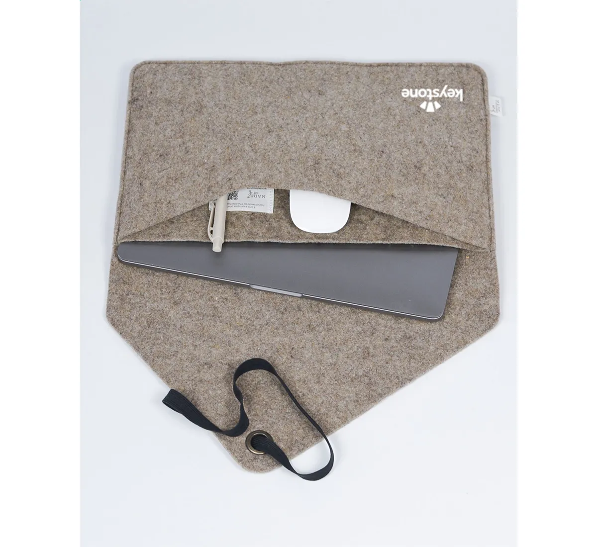 Калъф за лаптоп 14″ на марката MADE out of е създаден за хора, които ценят красивия дизайн, устойчивото производство и вниманието към детайла. Този стилен дизайнерски калъф е изработен от рециклиран филц от вълна, съдържащ 50% рециклирани материали, 30% вълна и 20% PE. Всеки елемент е внимателно подбран, за да предложи не просто защита, а изживяване, което съчетава отговорност към природата и усещане за лукс.