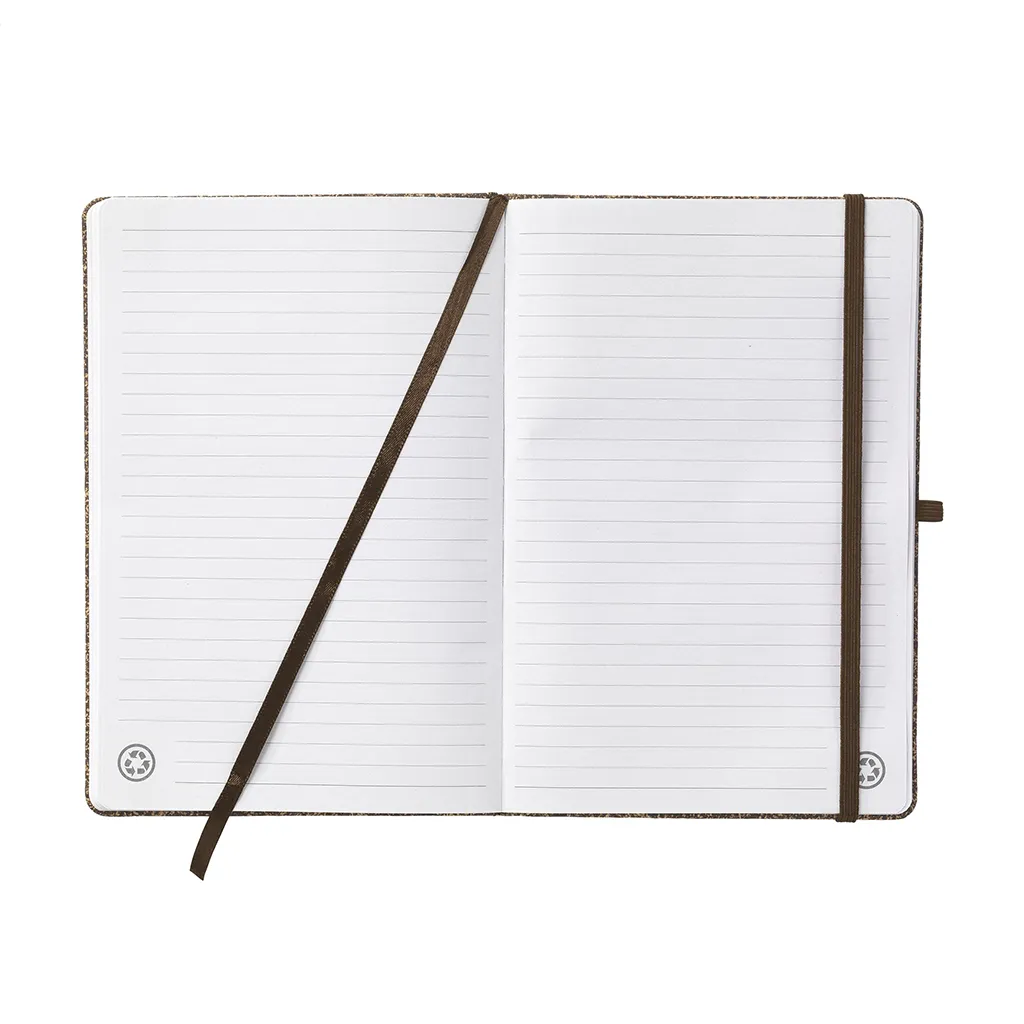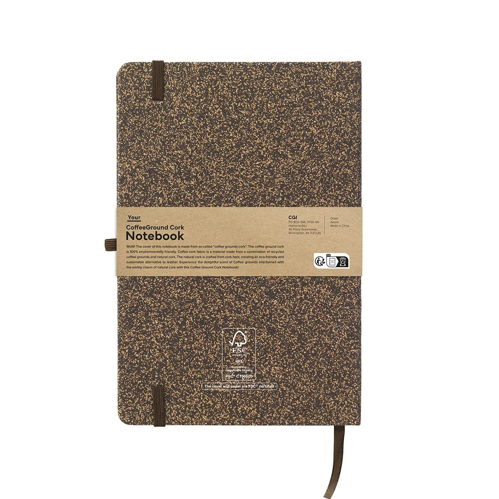 Корица от FSC Mix сертифициран картон е покрита със смес от утайка от кафе, корк, полиестер и памук. Тази комбинация придава приятна текстура и натурален вид в различни кафяви нюанси.Повърхността е здрава и гъвкава, което предпазва страниците от износване.