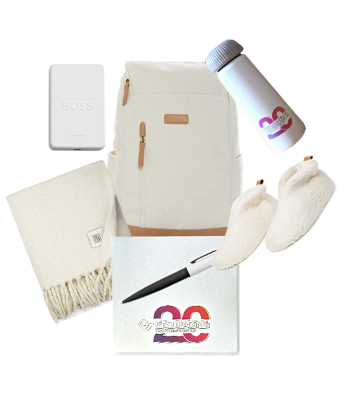 Комплектът 20 години Geotrading обединява премиум аксесоари с ясно дефинирана идентичност и последователно изпълнение във всеки детайл.