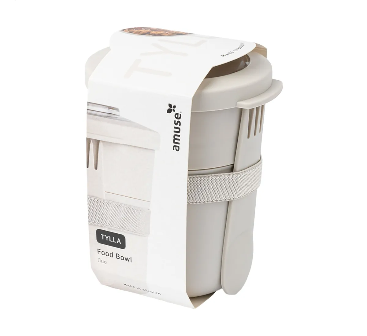Преносима купа за храна Tylla Duo от Amuse предлага практичност и удобство, позволявайки Ви да се насладите на обяда или любимата ви закуска в движение. Моделът разполага с два отделни контейнера, които се отделят чрез завъртане, осигурявайки лесен достъп до съдържанието. Горният контейнер има вместимост около 150 мл и се затваря с  непропусклива Tritan капачка, подходяща за плодове или мюсли. Долният контейнер е с капацитет 450 мл и предлага гъвкавост за различни хранения, включително супи, сандвичи или любимите ви ястия за обяд.