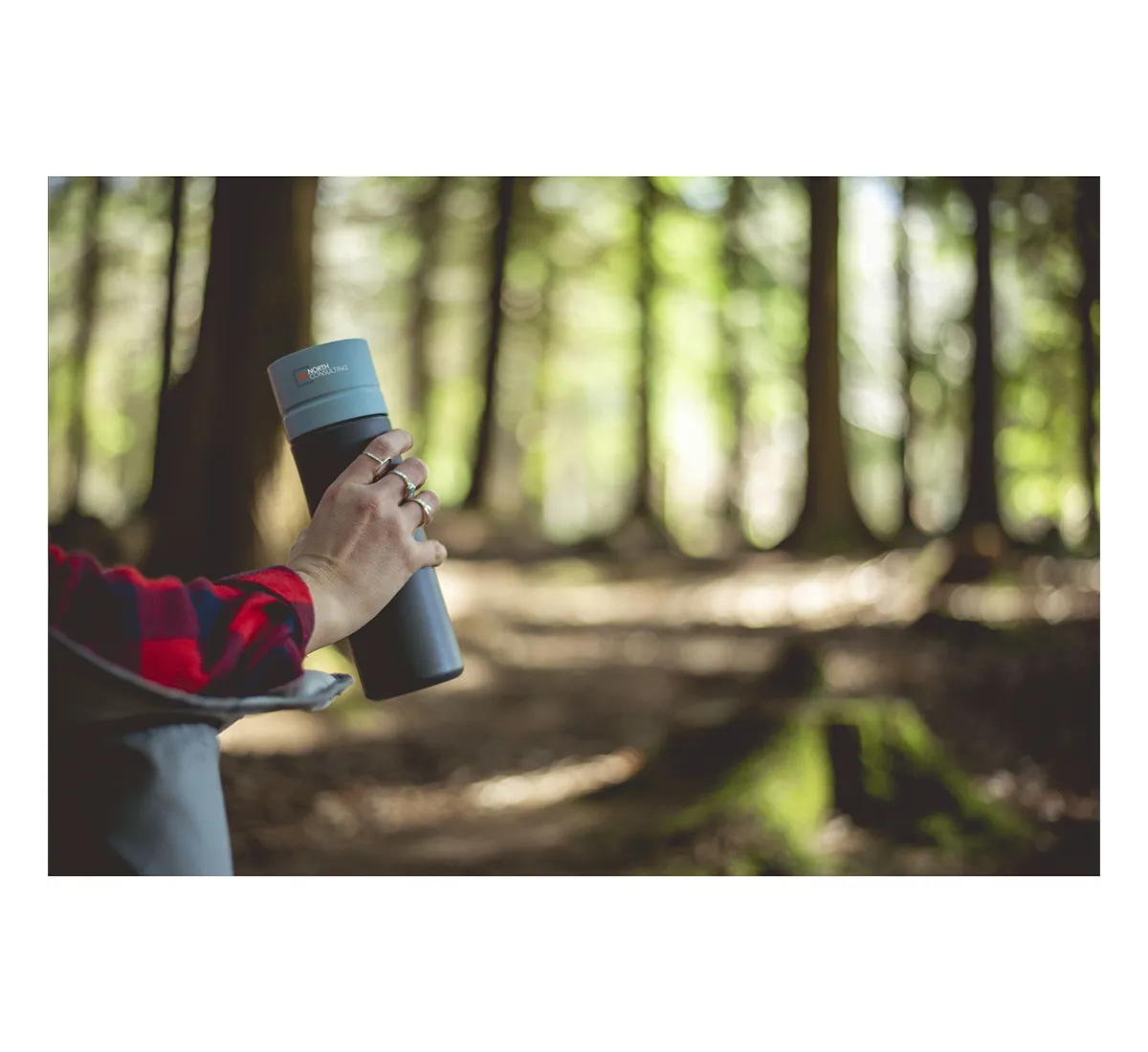 Бутилката е изключително лека, 100% рециклируема и напълно защитена от течове – надежден избор дори когато я носите в раница или чанта. Материалите са висококачествени, издръжливи и безопасни за ежедневна употреба. Не е подходяща за горещи напитки, а капакът може да се мие в съдомиялна машина – само в горното отделение. Вместимостта от 600 мл е перфектният баланс между удобство и компактност.