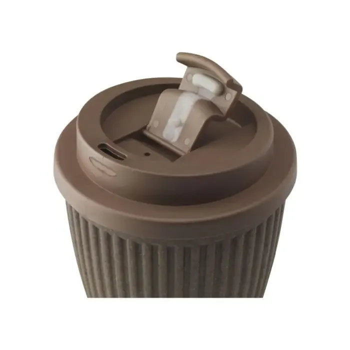 Част от еко комплектът Coffee Reborn е термо чаша за кафе с двойна стена, изработена от остатъци от кафе и отпадъци от захарна тръстика. Комбинацията от естествени материали придава характерен външен вид и приятно усещане при допир. Чашата разполага с винтов капак с отвор за пиене и интегрирано затваряне, което предпазва от нежелано разливане. Вътрешната стена и капакът със щракващ механизъм са от компостируем материал PLA.С вместимостта от 250 мл чашата е идеална за ежедневна употреба.