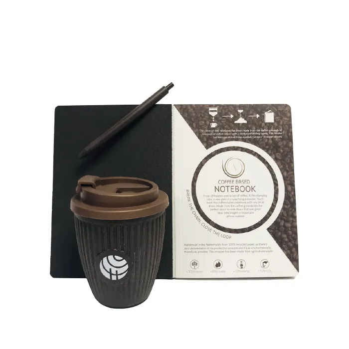 Термо чаша от кафе и отпадъци от захарна тръстика, A5 бележник с корица от кафе и химикалка от кафе
