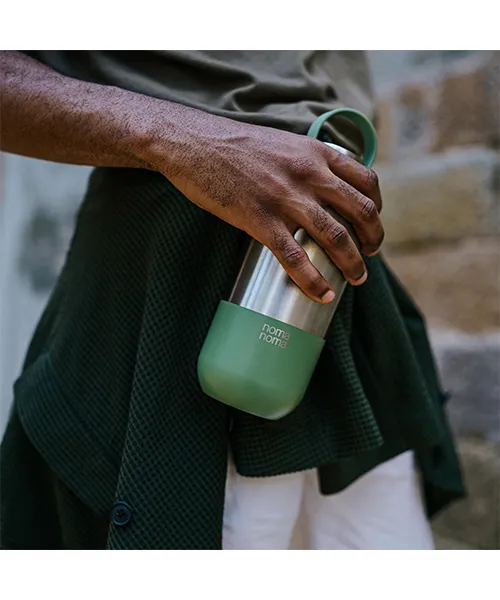 Noma Noma Двустенна термо бутилка впечатлява със своя немски дизайн и изключителна здравина. Този аксесоар съчетава стил и устойчивост, като за направата му е използвана 92,5% рециклирана неръждаема стомана. Повърхността е завършена с висок клас прахово покритие, което гарантира сигурен захват и защита от надраскване. Всеки детайл е разработен в Нюрнберг с мисъл за хората с активен начин на живот. Външният вид е модерен и изчистен, без излишни елементи, които да натоварват окото.