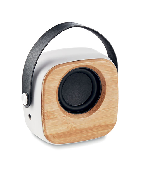 5.0 Безжична колонка от ABS с бамбукова предна част и PU лента.